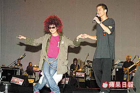 楊千嬅和梁朝偉主演的電影《行運超人》,將於新年檔期上映,其中一場戲講述偉仔為救楊千嬅,兩人在船上被雷劈,變為爆炸頭,搞笑之餘亦十分浪漫。而千嬅的爆炸頭假髮,原來曾於林海峰拉闊音樂會任嘉賓時戴過。