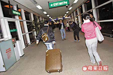 昨晚六時許,張栢芝終由台灣返港,她推着一個LV行李篋出閘時,甫見記者即說:「我冇化妝,行遠啲影。」其後栢芝更開始奔跑,記者追問她是否睡過頭因而缺席電影開鏡禮時,栢芝說:「我唔會喺機場答任何問題。」再問她是否知道王菲與霆鋒買卡地亞情侶戒指?栢芝仍是同一個答案,並說:「係咪要講多次呀?講英文好唔好?」然後又說:「影咁多做乜?嘥晒啲錢,登都登夠啦!」