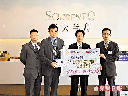 今個月一號抽出最後一個獎,係澳洲悉尼動感之旅,價值兩萬蚊,由一名廠家奪得,佢以五百九十萬買入一個千四呎單位。之前兩個旅遊獎係去法國巴黎同英國倫敦,由同一家代理行嘅客攞到。