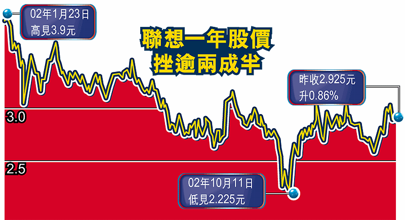 【本報訊】聯想集團(992)的個人電腦(PC)銷量一直是投資界的焦點,過去1年因市場可能遭戴爾(Dell)侵蝕,股價下挫逾兩成半。但資訊產品研究公司IDC最新報告指出,去年第四季聯想的個人電腦付運量高達90.3萬部,較2001年同期上升24.4%,遠高於15%的亞太區市場整體增幅;其產品於亞太區市場佔有率達13%,晉身區內銷售冠軍。