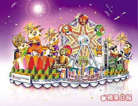 送馬迎羊,還有不足一個星期就踏入羊年,香港旅遊發展局在大年初一於添馬艦廣場舉行花車巡遊滙演,屆時Q版747客機、蜂蠟做成的「佛面龍身」雕塑,以及迪士尼卡通巨星米奇、美妮及唐老鴨等,會跟香港市民拜拜年,大家齊來送舊迎新,祝願全港喜氣「羊羊」。