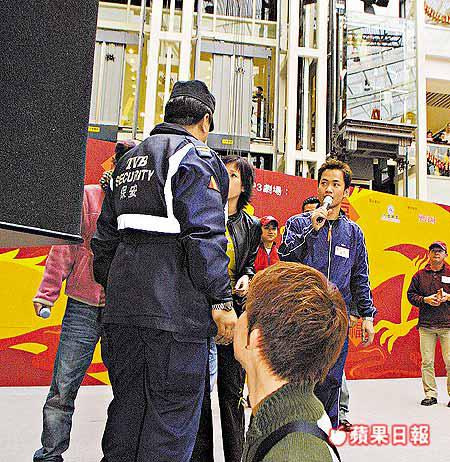文頌嫻同陳浩民噚日去咗奧海城宣傳今晚首播嘅無綫新劇《天子尋龍》,佢哋大派紀念品畀觀眾時,場面好混亂,重要暫時中止㖭。
