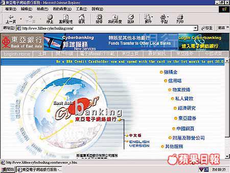中港兩地關係日益密切,港人對國內銀行服務的需求亦與日俱增,但基於地域及條例所限,即使轉帳過戶等瑣碎小事,港人亦每每得親赴國內方能處理,確實費時失事。近日,東亞、恒生及滙豐銀行同時在國內推出網上銀行服務,經常要處理國內財務的港人,以後大可省回不少腳程和時間。 記者:丹琍