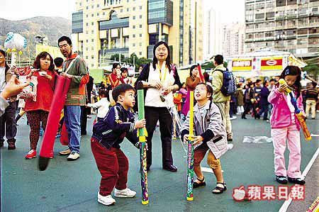 黃大仙廟香火鼎盛之際,維園年宵市場人潮更是全日川流不息,由於昨日是公眾假期,人潮在午飯過後已出現。住將軍澳的陳先生說,因為將軍澳年宵市場沒有氣氛,故特別帶同一對子女到維園湊熱鬧,他更花數十元買了支火箭炮給兒子,「一年一次,個仔鍾意,使啲錢都冇所謂。」