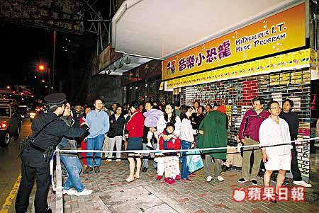 【本報訊】曾發生前女星朱燕珍男友醉酒襲警遭槍傷案的北角英皇道興漢大廈,昨晨二時許發生火警。住客發現大廈二十四樓梯間冒出火光及濃煙,立即報警。六十多名住客聞悉,自行疏散到街外,部份遭驚醒的居民倉皇抱着嬰孩及愛犬逃生,十分狼狽。更有愛好攝影的居民興致勃勃地帶同相機到地下,將火警及疏散情景拍攝「留念」。 消防員到場迅速將火救熄,事後調查疑有缺德住客拋棄未熄掉的煙蒂燃着垃圾起火,事件中無人受傷。
