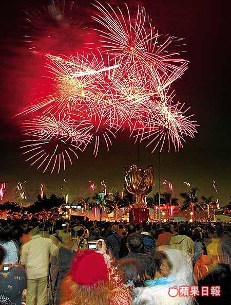 四十一萬名市民昨晚擠在維港兩岸,目不轉睛地欣賞三萬枚煙花彈在二十三分鐘內不斷發放,由於天朗氣清,市民得以清晰地看到煙花的美態。今年耗資四百萬港元的煙花滙演,最令人耳目一新的是第四幕「歡樂人間笑哈哈」中出現的「笑臉」煙花,趣致可愛的造型令到大人小孩笑逐顏開,而數幕歷時近一分鐘、連珠炮發的巨型煙花彈,也令到很多在場市民禁不住尖叫歡呼。