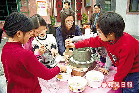 上水金錢村保留農曆新年的傳統,在昨日年初三用農家傳統石磨炮製土法杏仁糊,還有以柴火熬製的菜乾蠔豉豬骨粥,更有香茶侍奉。除了村民外,也歡迎市民前往共賀新禧。