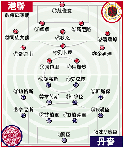 事實上,從年初一兩場賽事的表現來看,以國內聯賽精英為骨幹的丹麥隊,應該是今屆三支訪港外隊之中最強一隊,他們以一球十二碼飲恨伊朗隊腳下,這支歐洲傳統勁旅為挽面子,今晚對港聯肯定全無保留,預料是一場「大炒格」賽事。