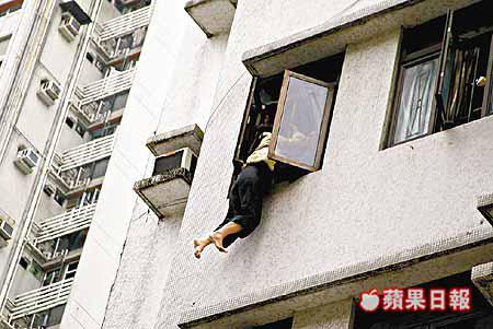 【本報訊】昨日初三赤口,五十五歲姓鄭婦人昨午四時許在西環第三街三十二至三十六號三喜樓唐四樓寓所,疑為感情問題與丈夫爭吵後,丈夫一怒離家,她疑覺受委屈致電媳婦哭訴,並危立窗外簷篷企圖跳樓自殺,媳婦通知家翁報警。 警方及消防員到場勸解,多名消防員並在地面張開救生氣墊戒備,經十多分鐘游說,鄭婦卒受勸服自行爬返屋內,獲送院檢驗。 溫文學攝