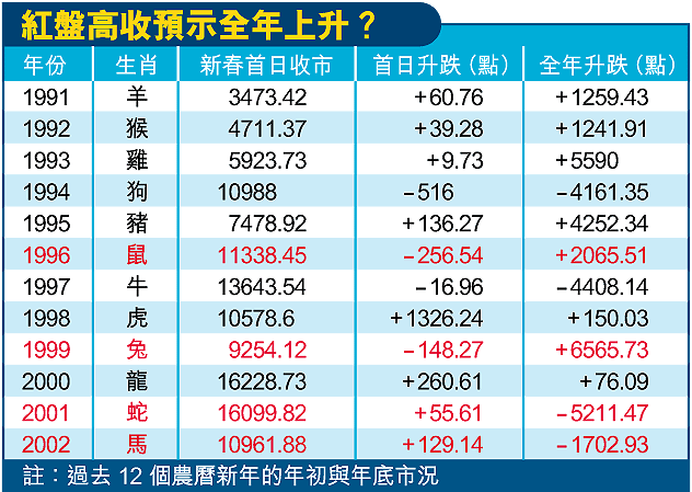 【本報訊】今天是羊年首個交易日,杜指昨晚早段靠穩,11時收報8116.95,升63.14,加上美國穿梭機爆炸可帶來「愛國升浪」,如果沒有壞消息出現,證券界人士估計,今日港股紅盤高收的機會很大,但升幅不會太大,大市短期仍受美股走向主導。