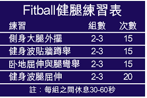 動作1:坐於健身波上,單腳緊踏地上保持平衡,另一腳則帶上鉛帶。
