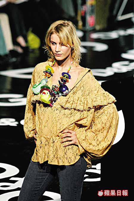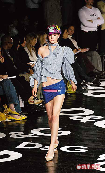 意大利名牌Dolce&Gabbana的副線D&G,二○○三秋冬新裝展現出八十年代英倫clubscene的盛世,D&G女郎以介乎淑女與魔女的形象示人,並繫以青蛙或海豚的塑膠頸飾亮相。