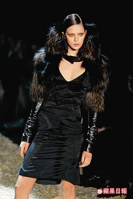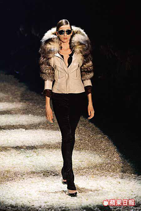 要令整個collectiongoclassy,TomFord採用了最矜貴的布料,大塊大塊的fur、實在的leather、光亮的真絲與satin,服裝輪廓線條在於強化女性的纖巧腰肢,非常八十年代的bigcollarjacket下,是一條條窄身裙或窄身褲,媚態以較subtle姿態表現出來,更有層次,更見深度。