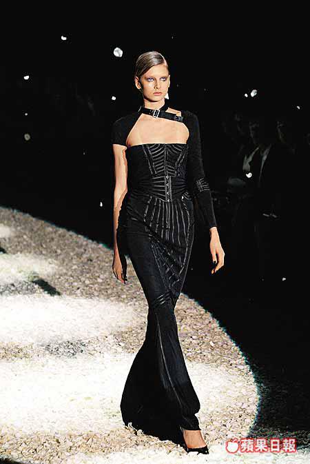二○○三秋冬TomFordforGucci新裝,TomFord借八十年代的浪漫,保留他一貫的致命性感伎倆,結合精細華貴的布料手工,為Gucci女郎營造出一個電影感強,真正的truebeauty形象出來。
