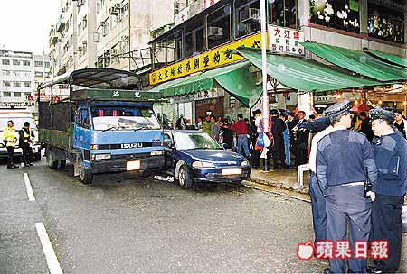 街坊表示,其間該小販跳回車上欲駕車離開時,空波狂踏油門數次,發出頗大噪音,引來途人注意,未幾聽到有人向司機出言喝罵:「你試吓掂我一條毛都唔掂,你夠膽開架車撞我。」其後貨車突然衝前,站在車前不遠處的三名食環署職員爭相走避,其中姓鍾及姓蕭兩名食環署職員,及一名姓曾(五十二歲)男途人走避不及,被貨車撞倒受傷;貨車撞人後餘勢未了,再衝前撞向停泊路邊一輛私家車尾後才停下。