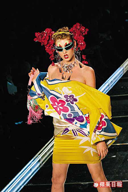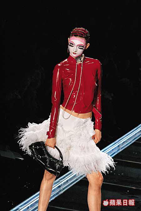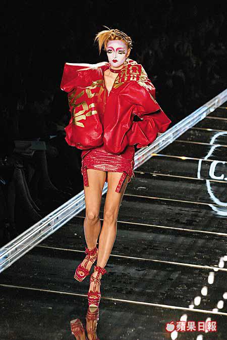 而承接JohnGalliano的東方情意結,新裝上亦不乏皇帝袍、中國字及鯉魚圖案的中、日式jacket,為整個collection保留一絲異國情調。