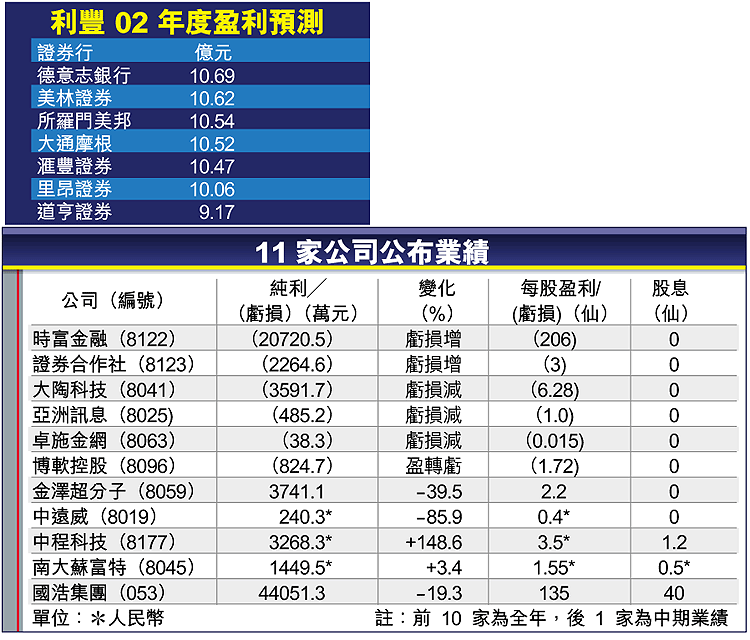 滙豐證券預測,利豐02年度盈利增33.88%至10.47億元,因01年度曾為其網上業務進行撥備,若扣除此影響,則02年度盈利實際增幅只10%。該行認為剛爆發的美伊戰爭,暫不會對利豐構成重大影響。