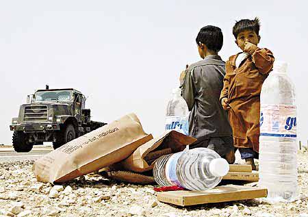 二十七歲的法拉茲達格,向面前的美軍不斷打手勢,重複雙手捧起作飲水狀的動作,即使言語不通,但一看便知道,他在懇切哀求美軍好心施捨食水給他喝。站在法拉茲達格後面,還有大批伊拉克人做出同樣手勢,向進佔的美英聯軍表達「我們非常口渴」的心情。