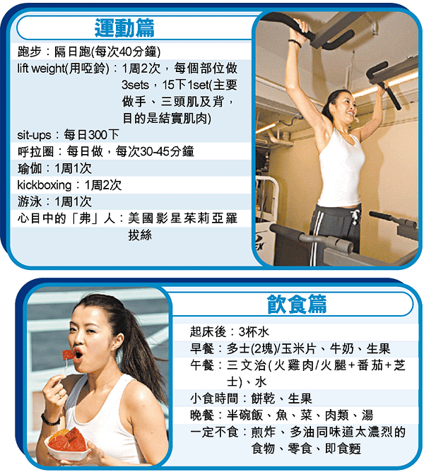運動,在這位港姐心目中少不得。「我做運動不但是想個body靚,而是為了健康,亦是為了興趣;現在一不做運動,整個人就好累,沒甚精神。所以就算幾忙,我都會抽時間在家裏做運動;多忙也可以抽三十分鐘做做運動吧。」