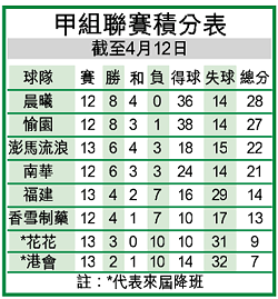 【本報訊】經足總主席康寶駒及時調停,昨午假旺角場舉行的甲組聯賽獨腳戲如期上演。結果,花花以○比三不敵澎馬流浪全失三分,來季肯定與港會降落乙組作賽。