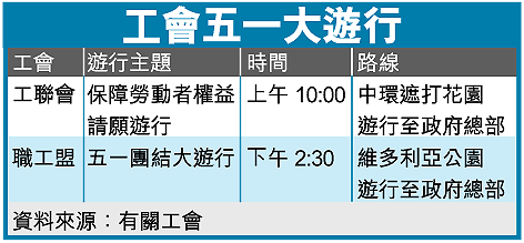 至於有超過三十一萬名會員的工聯會,今年五一也組織「保障勞動者權益」請願遊行,工聯會副理事長梁富華表示,希望透過今次活動,讓工人及自僱人士有吐苦水的機會,從而向社會各界表達心中的訴求。