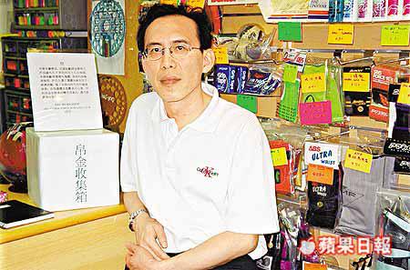 昨日,銅鑼灣的保齡球店pro-shop照常營業,拍檔之一的吳兆勝及助手梁悅明,午間時分已在店內放了一個為許長國籌款的「帛金箱」。
