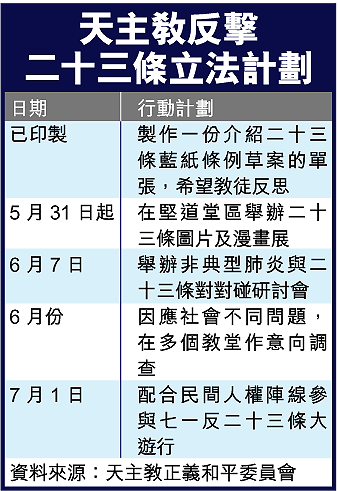 【本報訊】政府不顧一切為《基本法》第二十三條立法,終於把天主教香港教區主教陳日君逼上梁山。剛出訪德國返港的陳日君昨在記者會上,批評政府在全民對抗非典型肺炎之際,加速為二十三條立法,草率和過份,令人失望和擔憂。他更計劃出席今年以「毋忘六四、反對廿三」為主題的支聯會六四燭光晚會,這不但是他首次出席六四晚會,他還呼籲教友參加,「我係做緊教會要我做嘅事。」 記者:陳廣慧