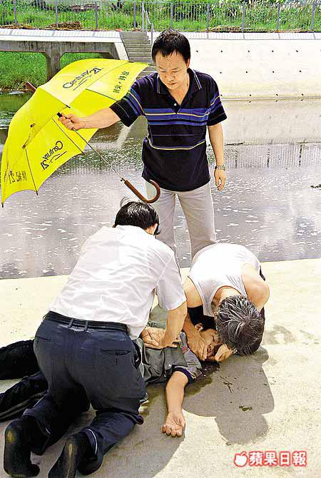 【本報訊】新界北區水浸重災區之一的雙魚河,在政府耗資近百億的治河及防洪工程中完成河道改造後,部份河床經不起一場百年難遇豪雨的考驗,在十一天前的「紅色暴雨警報」中被沖垮,激漲逾四倍的積水,昨午將一名在現場捉魚的九歲男童活活淹斃。而諷刺的是,事件中奮勇跳河,拯救溺童的竟是渠務署一名率隊巡查河道的高級工程師。雙魚河旁的村民事後傷心地說:「佢哋(渠務署)嚟遲咗啦,有冇工程都冇用嘅啦。」 記者:周鴻熙、黃冠笙、黃學潤
