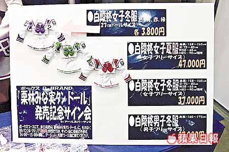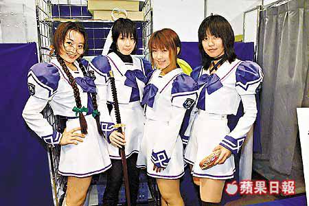 4位日本少女正在扮演《你希望的永遠》電玩遊戲中的角色,參展商正重點銷售她們穿的水手裝;設有紫、紅和綠三種顏色﹙圖左﹚,售價由2400港元起。此電玩遊戲於日本相當受歡迎,並分別設有PlayStation2及Dreamcast版本。