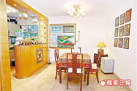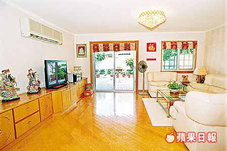 另外一間洋房面積1100方呎,大廳更長,以木地板及雲石地板區分客飯廳,上層3房全部打通,角落處鬆容地擺放了跑步機及按摩椅。整體格局沉實穩重,一望而知是長輩們的個人空間。