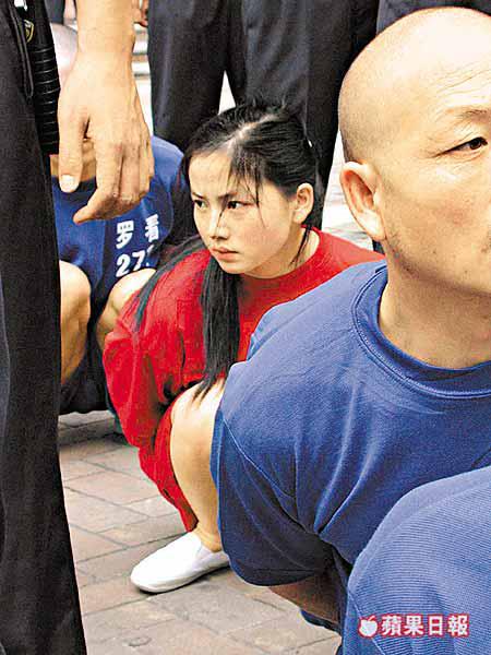 六十名男女案犯全部穿上由看守所提供的男藍女紅運動裝囚服,他們被押上台時,有幾名男犯顯得腳步浮浮,差點仆倒,而十四名「魔女」則個個低着頭不敢面對人群,幾名年輕一點的魔女滿臉通紅;當宣讀有關擄劫四十九個港人的案件時,台下即時一片嘩然,部份圍觀者甚至衝口而出:「當香港佬係魚腩都唔係咁劏啦」、「捉佢哋去打靶啦」等。