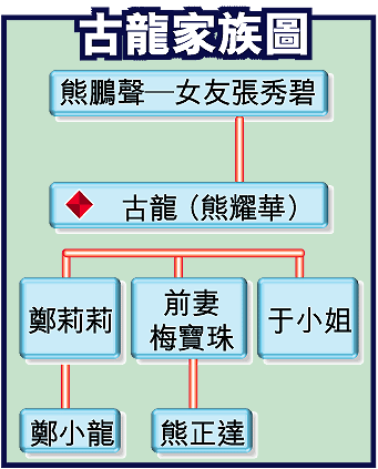 古龍出殯時,鄭小龍首次見到三位姑姑和叔叔,以及弟弟熊正達,當時除了他和熊正達,還有于小姐三人站在家屬行列,訃文上也記載着長子鄭小龍,對於出版商質疑他的身份,他氣憤表示:「如果不是他兒子,我幹嘛以長子身份捧父親靈位送喪,墓碑上幹嘛又刻我的名字」。