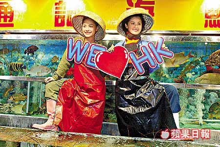 人氣組合Twins將於七月中推出《WeLoveHongKong》寫真集,蔡卓妍和鍾欣桐(阿嬌)前晚在西貢海鮮檔以賣魚妹造型亮相,只見二人穿上圍裙和水鞋,又戴上竹帽,甚有水上人氣息。