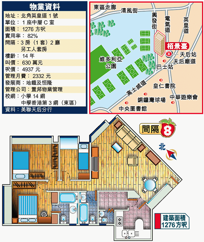 北角栢景臺矗立於地鐵天后站上蓋,前臨維多利亞公園,地理位置優越,與鄰近住宅比較,又以規模及質素盡佔優勢,賣點獨一無二,承接力強。