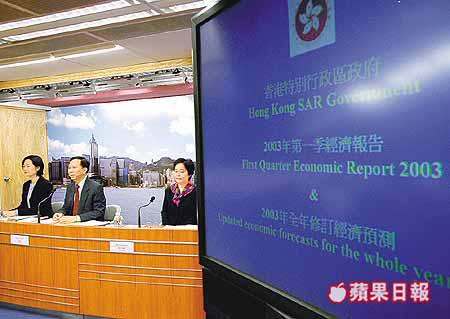 行政長官董建華昨日巡視紅磡旅遊車停泊處後表示,首季增幅達百分之四點五,但有關數字未有反映非典型肺炎對經濟帶來的嚴重影響,相信第二季及第三季數字會很差。不過,董建華強調,疫情已開始受控,而且今年第一季及去年下半年的數據證明,香港在過去一段時間所採取的經濟路向是正確的。所以,香港要在金融、物流、工商業支援服務、旅遊,以及與珠三角更加緊密合作等多方面加強發展。而為重塑香港形象,港府已展開一大型宣傳行動,今日首先在歐亞澳洲二十六份主要報章刊登廣告,傳遞香港安全及疫情受控的訊息,並設立一個名為