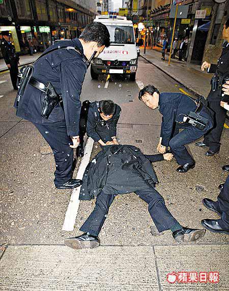 張指出,當時場面更趨混亂,他便按「緊急掣」要求支援,同袍見狀亦上前協助,兩警同時拔出警棍戒備,有人大叫「撼頭埋牆啦」,首被告大力轉身,走向附近牆壁,意圖擺脫警員拘捕,惟遭警員阻止,首被告又突然走出馬路,猛力轉身,順勢把張推了一下,他因失去平衡,後腦撞向車輛「尾沙板」,昏迷倒地,超過十二小時才告甦醒。案件今續訊。