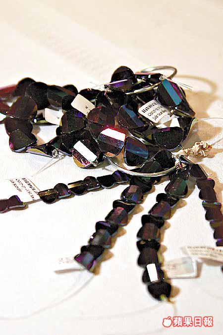 現場所見,展銷品當中,最常見的是以水晶或塑膠製成的飾鏈,售價由百多港元起。其中一名參展商表示,一條由奧地利入口的深藍色水晶手鏈,批發價為15美元,而零售價定為30美元,毛利達一倍,可見售賣珠子飾物的利潤非常可觀。