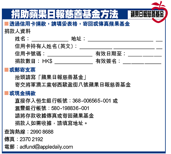 為讓子女可有一個穩定的居所,阿群於去年入紙申請公屋,近日獲配現居附近一個三百多呎的公屋單位,心願達成本是喜事,奈何想到要繳付屋租按金、水電煤氣,以及基本的裝修費用,她便頭痛不已。按照現時社會福利署政策,只有領取綜援的長者及傷殘人士,才會獲發搬遷津貼,阿群此類單親家庭,需要自行想辦法解決。蘋果日報慈善基金有見阿群的困難,即時撥款一萬元予她,應付新居搬遷開支。