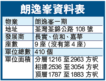 緊接朗逸峯,長實會發售元朗四季雅苑及東涌映灣園二期映濤軒。由112間、每間2000方呎洋房組成的四季雅苑,示範單位接近竣工,物業預期7月落成。