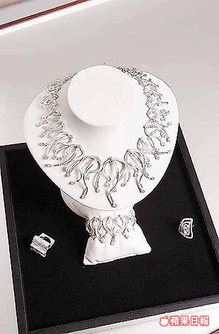 名模歐陽妙芝對其中價值近百萬元的翡翠玉珠頸鏈最心動,她說:「我一向鍾意鑽石,但自己膚色白,同翡翠嘅綠色好襯,戴起好突出。而且翡翠感覺特別天然同色彩潤澤,望落好舒服,好似充滿靈氣咁。」