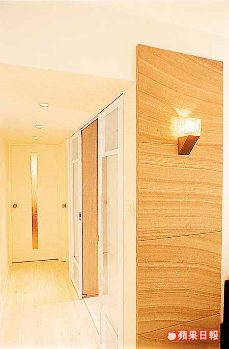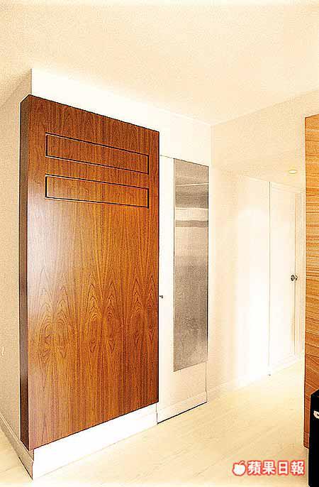設計師心思縝密,即使沒有改動的書房,亦刻意安裝玻璃趟門,客廳則添加深色木及SandStone牆飾板,而工人房門鋪金屬片,俱是流行物料,以營造現代氣息,多點清新感覺。
