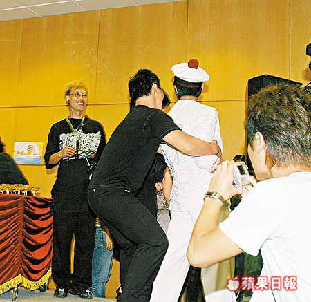 後來Eason更找來譚詠麟站在中間,阿倫見情況尷尬即搞笑緩和氣氛,後來記者要求霆鋒與Eason合照,Eason特地落台捉住穿着水手裝的郭富城做擋箭牌,謂要和城城合照,誰知城城以事忙為由避開,Eason才尷尬地與在台上等他的霆鋒合照,二人即扮出一副老友模樣。