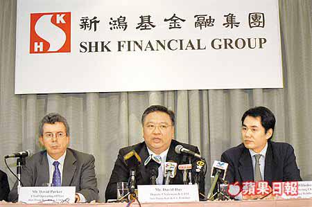 另一方面,新鴻基公司(086)公布,購入周毛兩人私人持有的證券行順隆集團,作價介乎3650萬至5150萬元。新鴻基營運總監大衛帕克指出,今次交易是向一家銀行購入一項以順隆股權為抵押品的貸款,為數3545萬元,再加上收購所需的行政及法律支出,故新鴻基要支付現金3650萬元,但由於順隆仍有一項約值1500萬元的資產,主要為本地貸款,可能獲套現,故最後作價要視乎變現情況,變現後這筆款項會歸周毛所有。