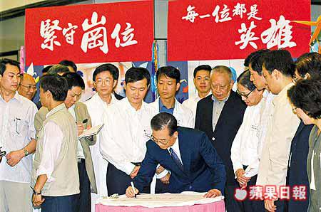 還記得香港從世界衞生組織沙士疫區名單中除名當天,尊貴的特首董建華向全港市民示範了甚麼叫做「高高在上」──勞師動眾走到淘大花園卻過門不入,拒絕上樓探望E座居民。昨日,「平民總理」溫家寶給董建華見識了甚麼叫做「愛民如子」。他走入淘大沙士死難者的家看望孤苦的遺屬;他又走入威院的深切治療部,給醫護人員打氣。但難為了董特首,為了陪伴溫總,竟要破戒首次踏足沙士病房。 記者:蔡元貴、周志鴻、馬耀文、李駿慧、鄭佩琪