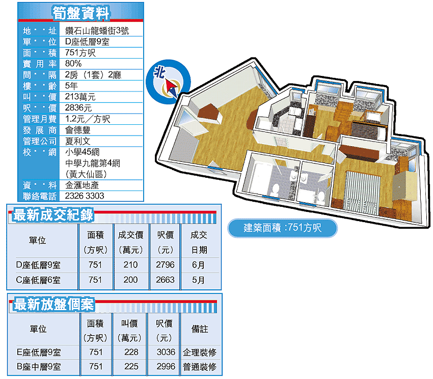 鑽石山星河明居社區配套完善,交通方便,購物就腳,六七百方呎單位已經有三房,入市價僅二百餘萬元。