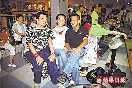 東華三院昨日舉行職工保齡球賽,鄧兆尊、阮兆祥和吳家樂代表無綫電視參加比賽,東華主席楊超成亦有出席。