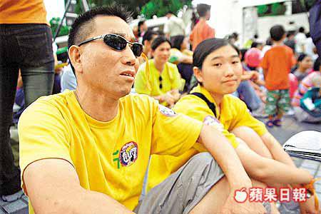 雖然行動不便,但也阻不了傷殘人士參與民主大會的熱誠。雙腳不良於行的黃太有參與7.1大遊行及7.9大集會,昨日又繼續與女兒Cato參與民主大會。