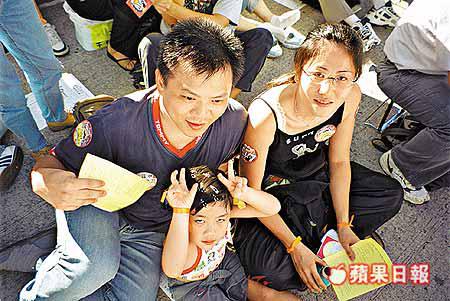 遊行集會是很好的機會進行公民教育,陳先生帶着女兒及太太一同參加民主大會。