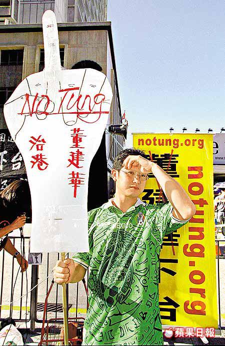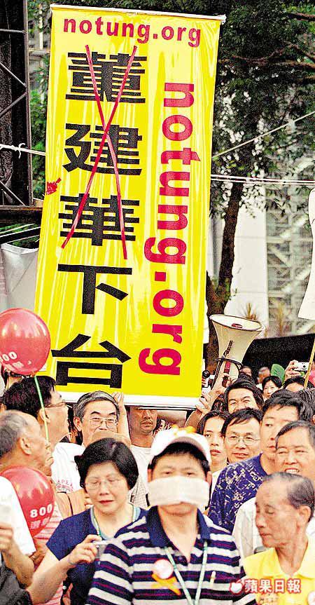 昨日是星期天,大批市民仍願意犧牲休息日子,到民主大會高喊「董建華下台」口號。