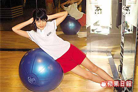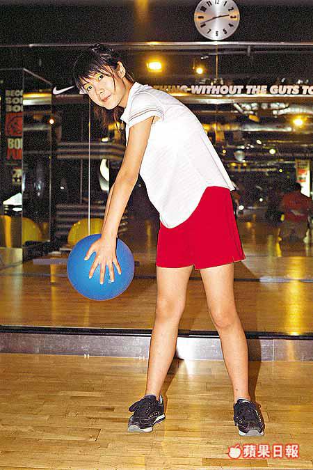 動作:上半身伏在健身球,雙腳微微張開保持平衡。用側腰力向上,直至有收緊感覺,緩緩躺下。